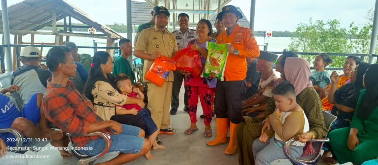 Mesuji, swaralentera.com –Kepala Pelaksana (Kalak) Badan Penanggulangan Bencana Daerah (BPBD) Kabupaten Mesuji, Budiman Nainggolan, menyerahkan bantuan dari Pemerintah Kabupaten Mesuji kepada masyarakat terdampak banjir rob di Desa Sidang Muara Jaya, Kecamatan Rawa Jitu Utara (RJU), Selasa (31/12/2024).